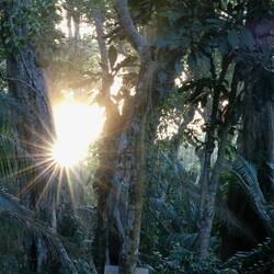 Der Weg führt uns dabei über sehr steile und löchrig-schlammige Wege weit in den Regenwald hinein.
