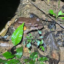 Mit Gummistiefeln, Regenschirmen und Taschenlampen ausgerüstet geht es danach für 1,5 Stunden über sehr matschige Trails, wo wir weitere Frösche, Aale (!), Schlangen, riesige Ameisen, schlafende Vögel und noch mehr... Frösche in allen Größen und Farben treffen.