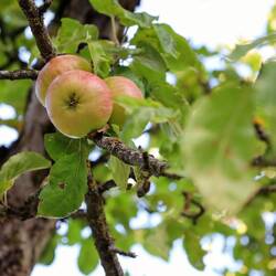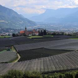 Wir bessern das Taschengeld von "Sarah & Julia" etwas auf und knuspern frische Südtiroler Äpfel, während wir passenderweise auf dem "Apfelweg" die letzten Meter zum Dorf Tirol laufen.