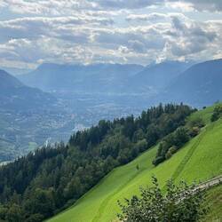 Damit verlassen wir den offiziellen Meraner Höhenweg etwas früher, sparen uns aber einige Höhenmeter und 20€ für die Talfahrt mit der Seilbahn.