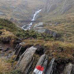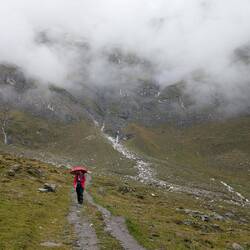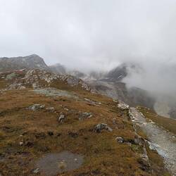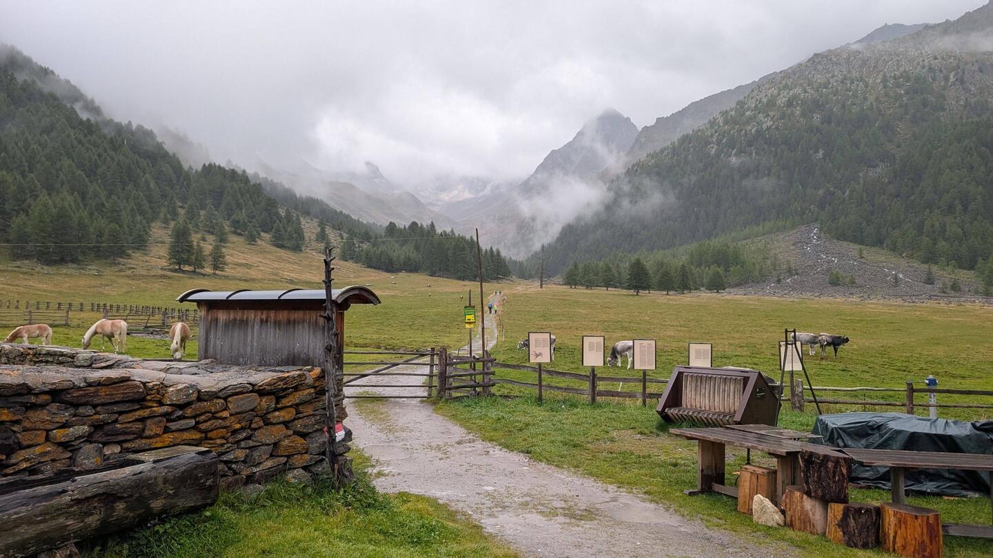 Der Abstieg ist dann steil, läuft aber erfreulich *flüssig* (haha). Nach insgesamt 7 Stunden kommen wir so in Pfelders an. Pünktlich zu unserer Ankunft hört es auch plötzlich auf zu regnen - ist klar...