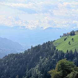 Die nächsten Kilometer führen uns durch sehr steilen Wald. Natürlich haben wir uns die schmalsten und am wenigstens begangenen Pfade raus gesucht. Irgendwann lichtet sich das Dickicht endlich und wir treffen auf weitläufige Apfelplantagen und hübsche Bergbauernhöfe. Mehrere Verkaufsstände laden zum ausgiebigen Shoppen ein: Apfelsaft to go, Apfelessig, Gemüse, Schmuck, Seife, handgestrickte Socken...echt gute Auswahl.