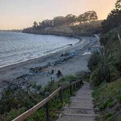 Uns begegnen nicht nur viele Rehe mitten in der Stadt (eins 💩 gerade ungraziös auf den Rasen, als wir vorbei fahren), sondern es gibt auch noch einen "Otter Point", wo man regelmäßig flinke Fellnasen beim Schwimmen, Spielen und Fressen beobachten kann.