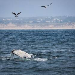 Monterey gilt als besonders guter Ort für Meeressäuger-Beobachtung, da direkt vor der Küste tiefe und futterreiche Unterwassergräben liegen. Entsprechend ist ordentlich was los, und auch unsere Buckelwale aus Hawaii legen hier gerne einen Boxenstopp auf ihren Weg nach Alaska ein. Nach der mehrmonatigen Fastenkur müssen sie auch mächtig Kohldampf haben!