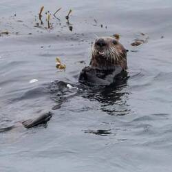 Tatsächlich haben wir Glück und entdecken mindestens ein halbes Dutzend Seeotter in der Ferne im Wasser. Sie sind etwas größer, gedrungener gebaut und puscheliger als europäische Fischotter, aber mindestens (!) genauso unterhaltsam.