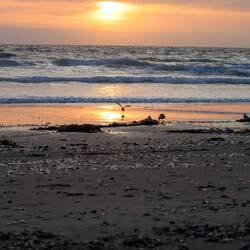 Sanfte Abschüttelungsversuche schlagen fehl. (Will es nicht versehentlich ins Meer kicken - noch nicht...)