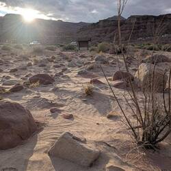 Dezent darin eingebastelt ist dann unser Campground. Außer Toiletten gibt es zwar keine anderen Facilities (und Handyempfang schon mal gar nicht), dafür steht man aber ruhig inmitten schönster Natur und Sandsteinfelsen. Top!😍
