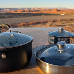 Daher haben wir schon in Down Under einen Kochtopf, zusätzliches Besteck und ein paar andere Sachen gekauft. Und weil wir nicht wussten, ob wir hier in den USA alles nochmal neu besorgen müssen, sind wir die letzten Wochen tatsächlich mit besagtem Kochtopf und einigen Küchenutensilien durch die Welt geflogen. Das wurde eng im Gepäck - und schwer.😅 Da ist der innere Sparfuchs wohl etwas mit uns durchgegangen.