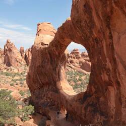Besonders schönes Glanzstück ist der namentlich passende "Landscape Arch" , der mit einer Spannweite von über 96 Metern gleich mal der längste Felsbogen Nordamerikas ist.