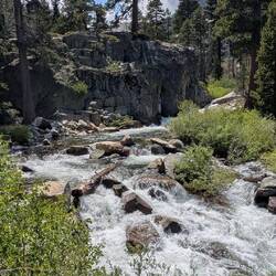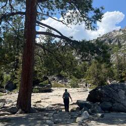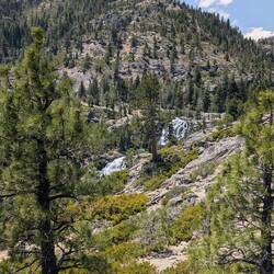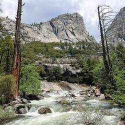 Wir entscheiden uns daher, stattdessen nur ein Teilstück der Tour zu 2 großen Wasserfällen zu laufen. Hier startet sogar offiziell der John Muir Trail! Damit bin ich nun ungeplant ein Stück der ersten und der letzten Etappe (Mt. Whitney) gelaufen. Muss ich also nur noch das ganze "Dazwischen" in Angriff nehmen... Irgendwann. 😅
