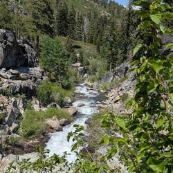 Die Ausblicke sind ähnlich wie im Yosemite: Alpine Landschaften, rauschende Flüsse, Wildblumen überall und am Ende wartet ein bildhübscher, klarer Bergsee auf uns. Die Sierra Nevada hat uns es ziemlich angetan. Schade nur, dass der Weg so kurz ist. Nach knapp einer Stunde sind wir auch schon wieder zurück.