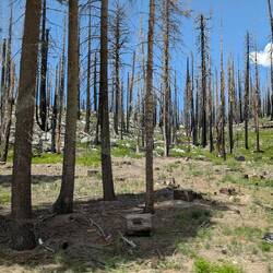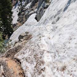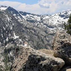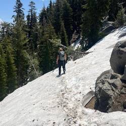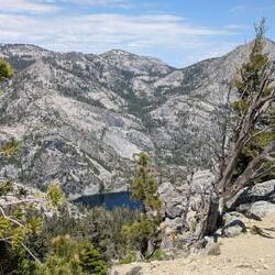 Erst wollten wir ja den Hausberg vom Lake Tahoe, Mount Tallac (2.968m) erklimmen, nur ist dieser noch zu eingeschneit. Stattdessen machen wir uns auf den teils weglosen Aufstieg zum Maggies Peak (ca. 2.600m).