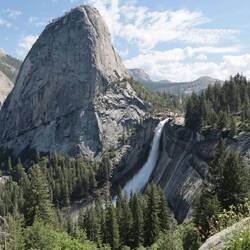 Und es geht weiter. Wir passieren erst die Fallkante des Wasserfalls mit spektakulärem Blick hinunter ins Tal, steigen dann fast direkt neben dem Wasserfall ab, wobei wir die ganze Zeit das mächtige Donnern im Ohr und unter den Füßen haben, nur um schließlich vor dem ebenso mächtigen Vernal Fall zu stehen. Wow!