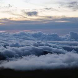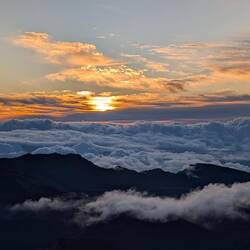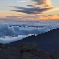 In samtig weicher Wolkenstimmung eingehüllt leuchten der Krater und der Himmel vor uns auf. Erst blau, dann rot, dann golden... Und dann nur noch strahlend hell.