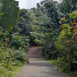 Nachdem wir 10$ obligatorische Parkplatzgebühr entrichtet haben, geht's über einen einfach angelegten Pfad ca. 2 Kilometer durch eine Art botanische Anlage. Am Wegesrand blühen und gedeihen viele tropische Pflanzen, sehr hübsch anzuschauen.
