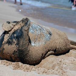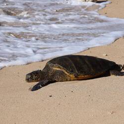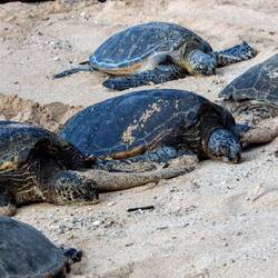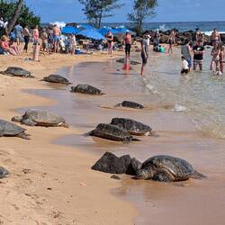 Wir haben in der Nähe fast menschenleere und mindestens genauso schöne Strände gesehen, die augenscheinlich viel besser für tagfüllendes Sonnenbaden von Robbe, Schildkröte und Co. geeignet sind.
