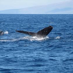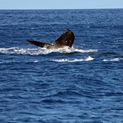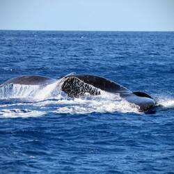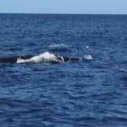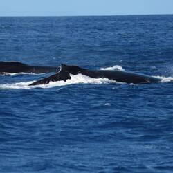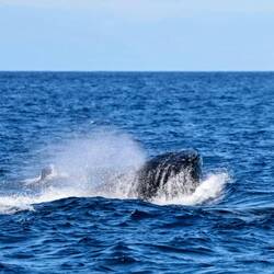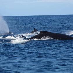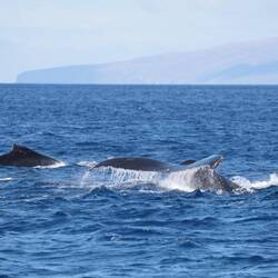 Fahren danach zu einem Lookout, von dem aus wir bestimmt eine Stunde lang Buckelwale in der Ferne beobachten (leider sehr weit weg für Fotos).