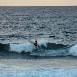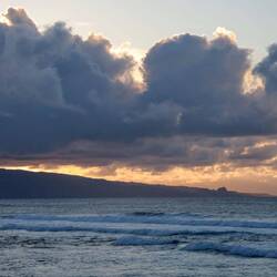 Nachdem wir uns irgendwann doch noch mühsam in eine halbwegs aufrechte Position gehievt haben, schauen wir ewig von unserem Balkon aus den Wellen beim Rauschen zu.