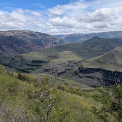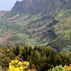 Stattdessen klappern wir alle Lookouts im Kokee State Park und am Waimea Canyon ab. Die Straße zum letzten Aussichtspunkt ist gesperrt, da machen wir uns halt zu Fuß auf den Weg und bekommen so doch noch ein wenig Bewegung.