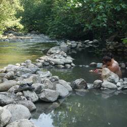 Am nächsten Tag fuhren wir ein Stück um Mitten an einer Bergstraße zu halten. Hier soll es heiße Quellen geben?- Doch nach kurzem Abstieg stieg uns am Ufer eines eisigen Flusses der Geruch von Schwefel in die Nase- die Quelle ist nicht mehr weit. Ein Stück Fluss aufwärts erspähten wir dann drei mit Steinen abgetrennte "Becken" mit unterschiedlichen Temperaturen. Leider hatten wir kein Thermometer dabei, aber laut Internet sprudelt das Wasser hier mit 55 Grad aus dem Berg. Nach kneippscher Art wechselten wir zwischen kaltem Fluss, heißem und angenehmen Becken hin und her. Die Kleinen kamen im lauwarmen Becken auf ihre Kosten. Ein richtig cooles Naturspektakel, das wir so noch nicht erlebt haben- ein Mal heiß duschen für umsonst! Czytaj więcej