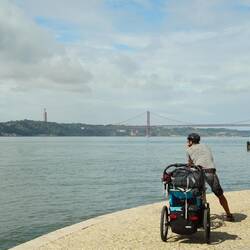 An Tag zwei fuhren wir etwas weiter in den Stadtteil Belém. Immer am Tejo entlang, vorbei an der surrenden roten Ponte 25 de Abril ging es zunächst in das Kloster Mosteiro dos Jerónimos. Wir durften dank Kinderwagen zum Glück an allen Warteschlangen vorbei gehen! Danach gönnten wir uns jeder ein ofenfrisches Pastel de Bélem (das originale Pastel de nata) und schlenderten durch den Stadtteil zum Denkmal Padrão dos Descobrimentos.