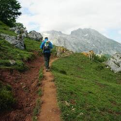 Am letzten Tag war das Wetter dann perfekt und wir starteten von Sotres aus Richtung Urrielluhütte. Und da war er, in seiner ganzen Schönheit stand der steile Zahn des Naranjo de Bulnes vor uns- ein einzigartiges Panorama für das sich der schweißtreibende Anstieg gelohnt hat!