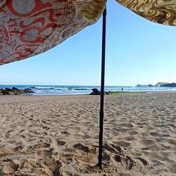 Gerade noch mit Bergblick gefrühstückt, saßen wir 1.5 Stunden später schon wieder am Strand- was für ein Kontrastprogramm!