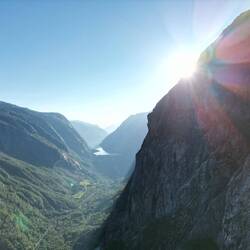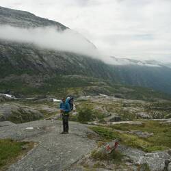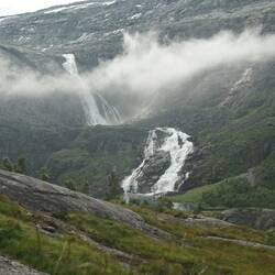 Am Ende des Eidfjordes, im Simadalen fanden wir einen schönen Schlafplatz am Ende des Tales. Da wir von dort aus nicht wie erhofft zum Hardangerjøkulen-Gletscher wandern konnten, suchten wir uns ein anderes Ziel. Und das konnten wir vom Platz aus schon sehen: Die Wanderung ging dieses Mal zum Kopf eines 500m hohen Wasserfalls.