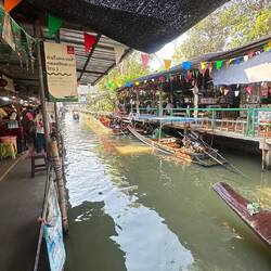 Retour Bangkok, p’tit tour de marché chinois pour quelques souvenirs Jacqueline (prénommée Marie) nous fait galoper en long en long et encore en long pour finir bredouille.😡 Bon stop p’tite pause sur le bord du canal, un smoothie du feu de dieu 🎇 et une attraction inattendue nous occupe un p’tit moment : un varan bien énergique descend le courant quel beau spécimen!!…. Suffit, retour pour récupérer les bagages et direction la gare pour notre bus vers Chian Rai ville située au nord de la Thaïlande. 12h de route 🥴 Jacqueline économise une chambre ce soir (un peu rat la Jacqueline !!)Read more