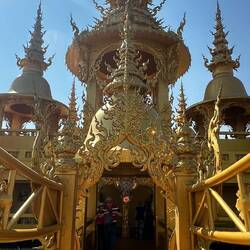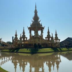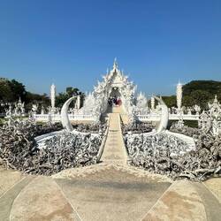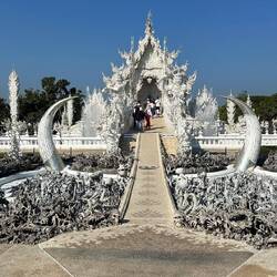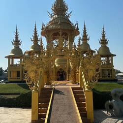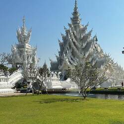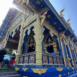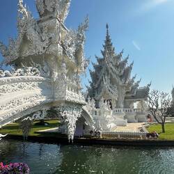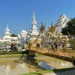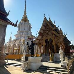 Voilà, encore un voyage dans un freezer, on arrive à Chian Rai congelé vers 8h 🥶🥶 Jacqueline a de grands projets : visite de 3 temples puis trajet ce soir vers Chian Mai, fiouuuu, elle est ouf cette fille !!! P’tit dej sympa dans un café un peu éloigné de la gare routière, le chef nous dégotte un Scoot et c’est partie. Et ça vaut le détour, la journée se passe comme une fleur, on prend notre temps en plus ( surtout pour Josiane, faut pas la brusquer ..) surtout que le spectacle est grandiose, les photos n’attendent pas !! voilà on rentre à l’heure pour enquiller le trajet vers Chian Mai. Mission accomplie. Arrivée vers 22h30 à notre guest house. A noter que Jacqueline fait des siennes, elle se plaint du ventre et se couche patraque. Quelle petite nature !!!!Read more