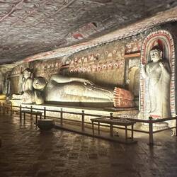 Départ pour Dambulla 5h45 ! Ah non pardon, ça c’était prévu avant que ma carte de crédit ne se fasse avaler par l’ATM hier soir. Du coup nous sommes obligées d’attendre 9h que la banque ouvre afin de récupérer ma carte ! All good c’est fait ! Nous voilà partie pour la gare routière afin de grimper dans un bus local direction Dambulla ! 4h de trajet ou nous sommes plus près de la mort que de la destination finale mais nous y arrivons! Petit couac avec l’hôtel qui finalement ne se trouve pas à Dambulla même mais à 1h de route donc nous changeons et prenons un hôtel plus près ! Le midi nous trouvons un restaurant jamaïcain (🤷🏻‍♀️) sur la route, c’était copieux, bon et ambiancé au rythme de Bob Marley ! Top ! L’après midi nous allons au Golden Temple and Cave ! Incroyable très jolie, beaucoup trop d’escalier, on arrive en haut trempées de sueur !! Mais je me lie d’amitié avec un gamin avec qui je vais finalement rester le temps que nos parents respectifs usent les monuments avec leurs appareils photos.Read more