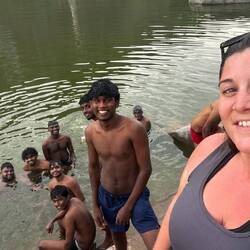 Aujourd’hui: Journée incroyable! Réveil avec un bon petit déjeuner fait avec amour par notre réceptionniste Dileep ! Et puis direction la loc de scooter pour récupérer l’engin, même pas 10€ la journée, il ne me demande pas de caution et fait les choses dans les règles ! J’adore. C’est partie pour Pidurangala rock ou nous allons crapahuter jusqu’à atteindre LA vue qui nous coupe le souffle ! Nous assistons à un spectacle sensationnel donnant droit sur le Lion Rock et toute la vallée de Sigirya ! Une fois redescendu nous allons manger dans un buffet à proximité où les singes nous offre également un show très distrayant ! Puis nous reprenons notre mobilette afin d’aller parcourir les routes aux alentours! Quelle surprise et choc de croiser sur notre chemin deux majestueux éléphants grignotant leurs quatre heures sur la même route que nous ! Incroyable. Sur les petits sentiers tout le monde nous fait coucou ! Vieux, femmes, enfants ! Ils se promènent, ils se lavent ou ils travaillent mais il nous font coucou ! C’est génial ! Finalement nous nous posons près d’un lac les pieds dans l’eau ou les petits poissons viennent nous grignoter les peaux mortes ! Et hop une fishing therapy d’économisée! Puis une femme nous rejoint afin de se laver, nous échangeons malgré la barrière de langue quelques banalités, avant de repartir elle chasse un petit serpent qui nageait vers nous, puis nous dit au revoir nous laissant bouches bées quant à sa manière de vivre. Et puis finalement un groupe de jeunes garçons arrivent pour se laver ! Nous discutons tant bien que mal, nous échangeons âges et prénoms et bien qu’ils insistent, je ne donne pas mon numéro de téléphone ! Ils viennent tout juste de dépasser la majorité ! En tout cas c’était un super moment passé avec eux mais vient l’heure de rendre le scooter !