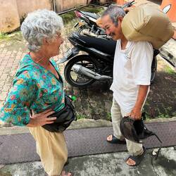 La nuit fut excellente pour moi mais compliquée pour Josiane encore 😩, qui dort avec un ratio de 3h de sommeil 1h de réveil… Le matin venu nous nous faisons souhaiter la bonne journée par le barde à plume local qui répond à chacune de nos phrases avec son sifflement joyeux, un régal 😍. Nous allons ensuite petit déjeuner dans un boui-boui local où nous mangeons des roti à l’œuf, en fait c’est juste des grosses crêpes avec des œufs cassés dessus ! C’est super bon et pour 1€50 par personne, boissons chaudes comprises on est content 😋.