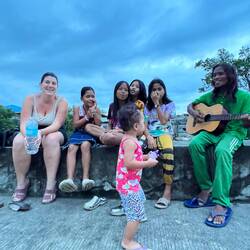 Nous arrivons sur l’île de Bohol a 11h30, nous allons récupérer notre chambre prendre une douche et ressortir manger du poulet frit à côté pour 1,50€ par personne. Avant de retourner à l’hôtel pour se taper une sieste du feu de dieu ! Ensuite nous partirons nous balader dans la petite ville de Tubigon, la même où nous séjournons. Nous sommes les seules étrangères, les gens sont curieux et très gentils à la fois. En nous enfonçant dans la campagne en bord de ville nous rencontrant des enfants avec qui nous discutons puis un des papa se joint à nous pour finalement nous jouer quelques chansons à la guitare. 🎸 Incroyable moment. Nous remarquons qu’ici les gens aiment la musique et chanter. Ils mettent de la musique partout dans toutes les boutiques et très fort ! Le taux de surdité ici doit péter tous scores. 😱