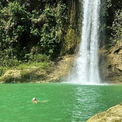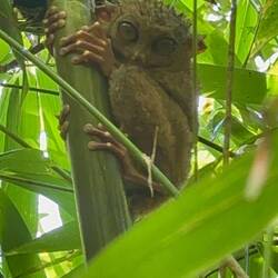 Enfin, nous voilà parti sur notre 2 roues à travers l’île de Bohol ! Premier arrêt Camugao falls, magnifique cascade où tu peux te baigner et plonger, prendre une coco pour y boire son eau ! Génial ! Bon le chemin pour y aller est très boueux et glissant et mes birkenstock en ont souffert, grave erreur de ma part que d’avoir oublié mes chaussures de rando cette fois. Ensuite nous prenons la direction du sanctuaire des Tarsiers. Un lieu où les Tarsiers, ces petits lémuriens aux yeux globuleux sont protégés et réintégrés dans leur habitat naturel. Nous avons pu les approcher de très prêt lors de leur sieste matinale. Après ça, il fait faim !! Une fois rassasiée nous descendons encore plus bas sur la presque île de Panglao où nous nous retrouvons au milieu des Resorts, des complexes hôteliers rempli de touristes rouges écrevisse, rond comme des queues de pelles et/ou botoxés à foison. Bref tout ce qu’on aime. 👍🏻 pas grave profitons d’une petite baignade dans cette eau bleue transparente et repartons direction notre petite ville paisible mais bruyante: Tubigon. La route est longue, 2h sous la brume et à la tombée de la nuit. 😖Avec des casques de velo à la place des casques réglementaires, on en a chié 😅 finalement de retour en un seul morceau idem pour le scooter il est temps de se doucher et de s’apprêter. J’ai à faire au bar ce soir !