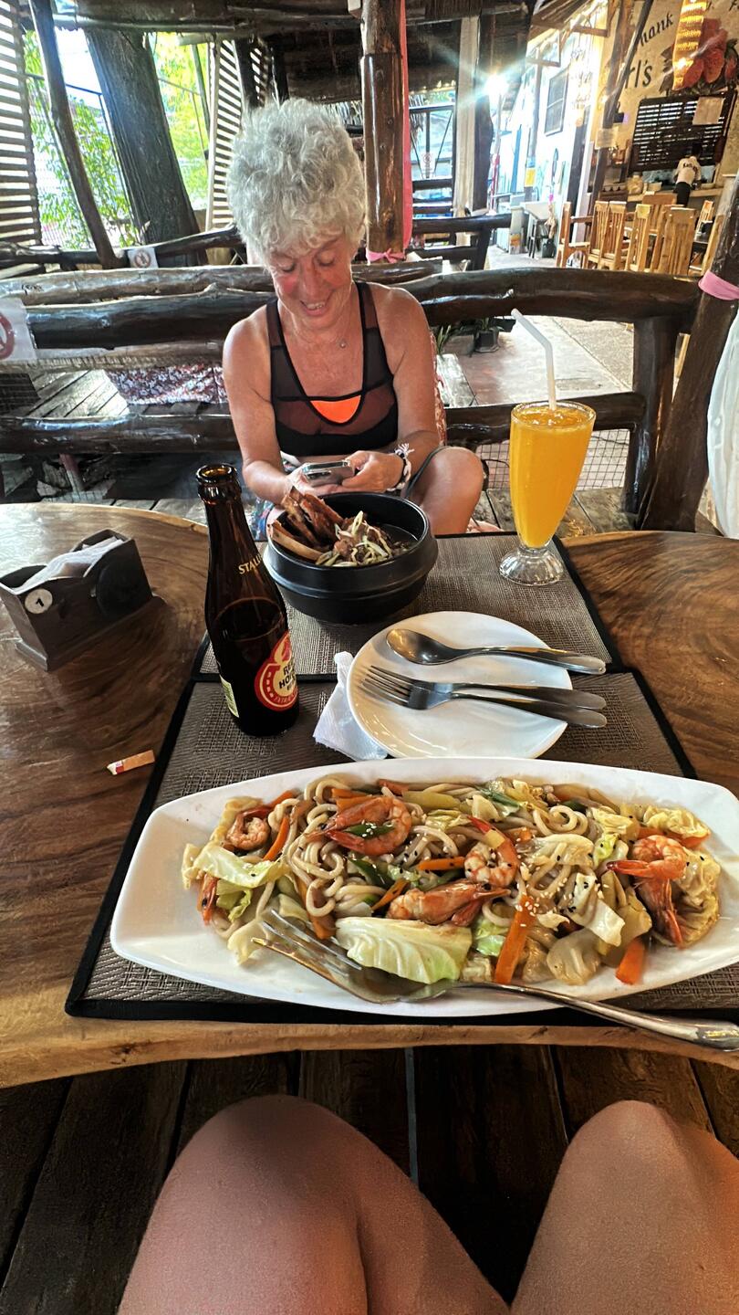 Une petite sieste s’impose pour Josiane qui n’a plus les yeux en face des trous 😵‍💫 nous allons ensuite déjeuner en bord de plage dans un beach restaurant local très sympathique où s’y mêle, culture locale, touristes et gros blanc dégueulasse de 50 ans accompagné de sa petite philippine de 18 ans. 🤮