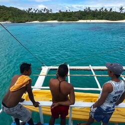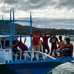 Nous embarquons sur ce qui va être notre maison pendant 3 jours. Un superbe bateau typique des philippines avec à son bord 6-7 matelots tous plus gentils les uns que les autres. Nous sommes un groupe de 19 personnes et notre guide, Benjie. Benjie c’est le guide à avoir pour son expédition. C’est une pile électrique toujours entrain de rigoler, à faire le clown à prendre soin de chaque personne qu’il a sous sa responsabilité, à nous soigner, dorloter, nourrir, faire picoler,… Le groupe est très hétérogène, des allemandes, des italiens, des israéliens, des anglais, des russes..🙄 les débuts sont un peu timide mais après la première soirée avec des jeux d’alcool ça va beaucoup mieux.