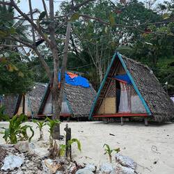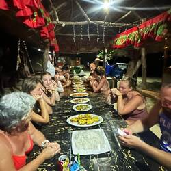 Un superbe terrain aménagé et décoré avec goût ou on y trouve des cahutes en bois et des maisons perchées. Avec un accès direct à la mer. Magnifique ! Les hôtes sont d’une gentillesse exceptionnelle. L’après midi nous irons sur une plage de sable blanc et d’eau turquoise occupée par les locaux. Quelques brasses sous l’eau afin d’explorer le magnifique fond marin et nous nous dirigerons vers la ville la plus proche afin d’aller acheter notre festin de réveillon de Noël. Deux sandwichs, une bouteille de gin un paquet de chips et ce sera parfait pour admirer le coucher de soleil sur la plage. Nous rentrerons à la nuit tombée pour profiter de notre cahute et faire un petit jeu de société en attendant le Père Noël.