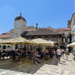 Wir sind nach dem Frühstück frisch gestärkt zu Fuß in die Altstadt nach Trogir aufgebrochen. Der Fußmarsch war etwas anstrengender als wir vermutet haben. Die Temperaturen sind heute schon auf einem hohen Niveau und wir müssen uns erst mal dran gewöhnen.