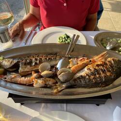Zum Abschluss des Tages haben wir uns ein schönes Fischrestaurant direkt am Meer in der Nähe unseres Campingplatzes ausgesucht und eine feine Fischplatte genossen.