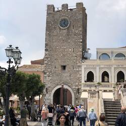 Nach gut 2 Stunden haben wir dann die Küste auf der anderen Seite erreicht und nach Taormina waren es nur noch ein paar Kilometer. Wir sind gleich mal Richtung Zentrum und haben uns nach einer Parkmöglichkeit umgesehen. Das war eine echte Herausforderung. Die Stadt ist ja direkt an die Steilküste gebaut, somit sind große Volksfestplätze mit Parkmöglichkeiten nicht vorhanden. Also, gefühlte 5 mal quer durch die Stadt, alle Parkhäuser gecheckt - leider alle mit Zufahrtsbeschränkung auf 1,90 Meter. Zu wenig für unseren Cali. Einzige Möglichkeit auf einen privaten Parkplatz den Wagen abzustellen. Das ist Abzocke pur. Nach ein paar Minuten Recherche im Internet haben wir den Parkplatz bei der Seilbahn angesteuert. Der war sehr günstig und die Seilbahnfahrt zur oberen Stadt war auch angenehm und ein Erlebnis, das zu dieser Stadt gut passt.