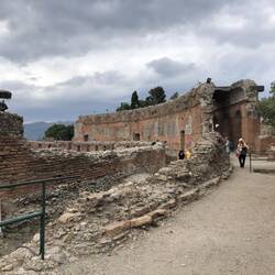 Aufgrund der vielen interessanten Geschäfte und dem gemütlichen Mittagessen in einem Ristorante ist uns die Zeit voll davongelaufen. Wir haben es heute nicht geschafft, die wichtigste Sehenswürdigkeit der Stadt zu besichtigen. Somit müssen wir nochmal rein und das Antike Theater anschauen.