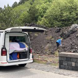 Wir sind auf jeden Fall alle wohlbehalten in Messina angekommen und sind gleich mal raus aus dem Trubel der Stadt. Aufgrund der Wolken am Himmel sind wir erst mal Richtung Palermo auf die Autobahn. Unser großes Ziel Ätna ist momentan noch ein wenig in Wolken eingehüllt. Deshalb erst mal diese Richtung. Wir haben einen schönen Zeltplatz nach ca. 50 Kilometer Autobahn und Landstraße gefunden. Ach ja, ich werde mich nie wieder in Deutschland über eine schlechte Straße beschweren. Sogar über unsere Weidenstraße werde ich in Zukunft kein schlechtes Wort mehr verlieren. Die letzten Tage waren eine Herausforderung für die Federung unseres Calis. Der arme Kerl hat echt das ein oder andere Schlagloch mitgenommen und zum Glück gut weggesteckt. Wir beide bekommen fast jedes mal einen kleinen Herzinfarkt, wenn es wieder rumpelt. Bei uns würde man die Straße sperren - hier gehört es zum normalen Straßenbild - und das auf Bundesstraßen und Autobahnen. Wir leben in Deutschland in einem Infrastrukturschlaraffenland.