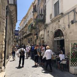 Die Stadt ist einfach ein Traum für alle Sinne. Eine kaum zu beschreibende Küste, das Meer scheint sich in den Buchten auszuruhen und dann die Felsen, auf der die Stadt gebaut wurde. Unbegreiflich, wie schön und faszinierend eine Stadt sein kann. Und dann der Trubel, das geschäftige Treiben, die Italiener, noch ein bisschen lauter als außerhalb der Stadt (jeder versucht den anderen zu übertönen). Die Geschäfte - vom edlen Desingnerladen bis zum Ledergeschäft, die ihre Waren in Sizilien produzieren - abwechslungsreich und so schön - einfach viel anders als unsere Städte. Hier macht Bummeln und Einkaufen noch wirklich Spaß. Die großen Ketten und Allerweltsmarken sind hier nicht oder sehr selten zu finden.
