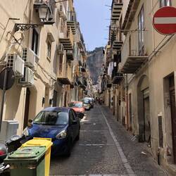 Nach diesen Eindrücken ging es weiter nach Monreale. Dort steht eine große Kirche mit tollen Mosaiken. Die Lage herrlich. Hoch auf einem Berg mit Blick auf Palermo Richtung Meer. Besser geht es kaum. Die Kirche und der ganze Ort wurde für die vielen Kreuzfahrttouris aufgepimpt und hergerichtet. Wir haben die Kirche nur von außen angeschaut. Erstens wollten die 10,— Euro Eintritt, was wir beide für eine Kirche schon etwas gesalzen finden. Zweitens sind wir mit Kirchen Besichtigungen schon über unserem Soll und drittens hatten wir nur noch knapp eine Stunde Zeit bis die zusperren. Auch die Kirche hat eine Siesta in Italien verdient. Also einmal rum um die Kirche, noch in ein feines Cafe eingebogen und Dolci genossen und wieder zurück nach Palermo. Lebensmittel noch kurz eingekauft, nicht dass wir auf der Fähre vom Fleisch fallen und weiter Richtung Hafen und den Cali auf einem bewachten Parkplatz abgestellt. Wir haben den Nachmittag in Palermo verbracht. Bisschen was Essen - haben sogar noch ein Lokal gefunden mit sehr guter glutenfreier Pizza und nochmal durch die schönsten Gassen geschlendert. Die riesigen Drachenbäume angeschaut und zum Abschluss die schönen Boote am Hafen inspiziert. Feine Teilchen. Dann wurde es langsam Zeit, dass wir uns um unsere Tickets für die Fähre kümmern. Hat alles sehr gut geklappt und hatten innerhalb kurzer Zeit die Tickets für uns und unserem Cali in den Händen. Zurück zum Parkplatz, Cali holen und vor der Fähre anstellen. Wir sind pünktlich in das große Schiff reingefahren und haben den VW Bus abgestellt. Mit Sack und Pack ging es zu unserer Kabine mit Dusche und 2 Einzelbetten und einem großen Fenster auf Deck 6. So, jetzt lassen wir uns ein Stück weit heimfahren.