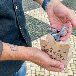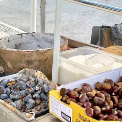 Nach der langen Wanderung hatten wir uns dann Kaffee und Kuchen wirklich verdient. Der Brownie mit salted Caramel war super gut. Der Bananentoast mit Erdnussbutter und gerösteten Erdnüssen war ein Gedicht. 😋😋 Thomas hat sich vor unserer Heimfahrt zum Stellplatz noch Maroni gegönnt. Die werden hier etwas anders geröstet und da sie hier in der Region geerntet werden, war die Qualität und der Geschmack exzellent!
