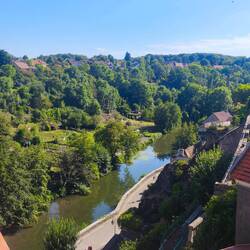 Este pueblo tiene una sola calle. Por un lado calle principal y por el otro tiene el río. No merece la pena venir a propósito. Tiene un jardín al que no hemos entrado porque 12€ por persona seBaca lagi