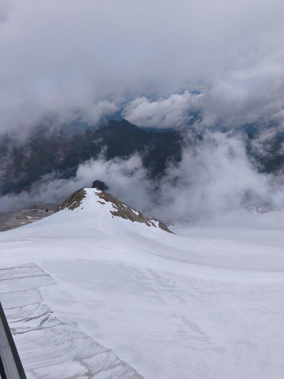 Hemos subido a la marmolada. Con tan mala suerte que estaba nublado y no se podía disfrutar de las vistas.