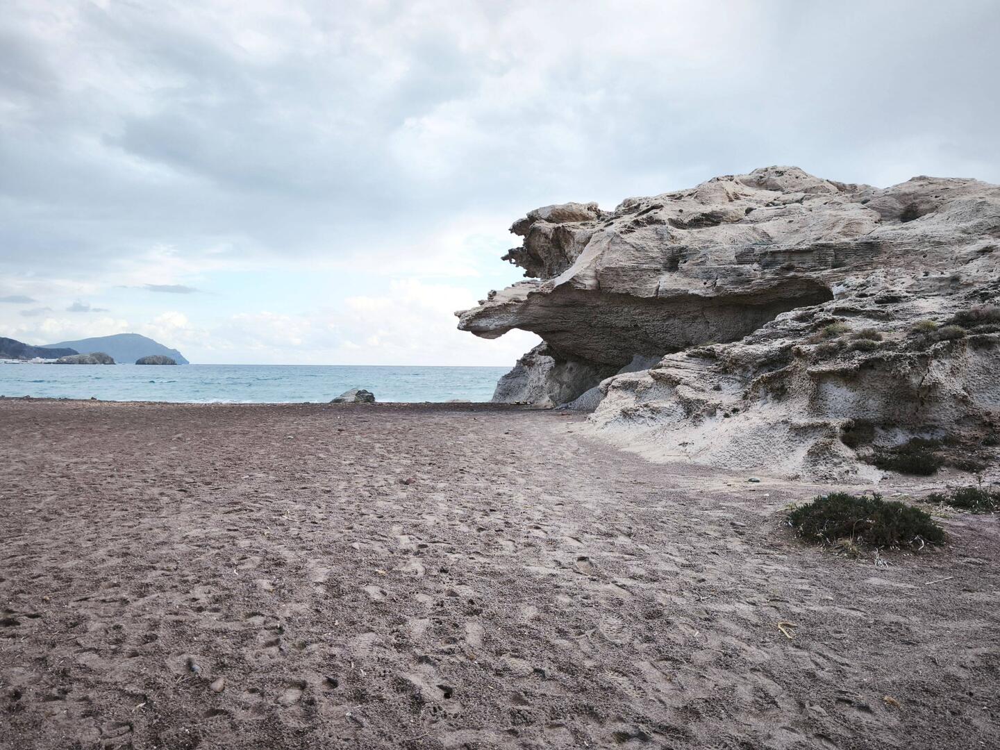 📌2️⃣9️⃣ Playa de los Escullos . Quitando esa formación rocosa, el resto no tiene nada. Una playa pequeña y el entorno tampoco es nada del otro jueves.