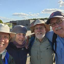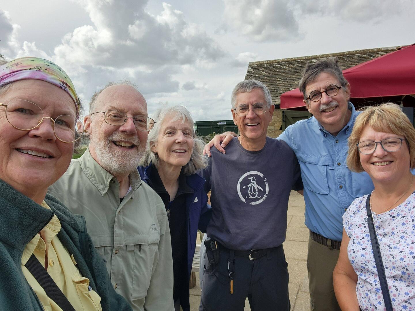 We were just about to crest the last hill when who should appear on the other side of the gate but Teresa & Neil Vincer, friends from our last UK walk, the Cleveland Way in 2023. Quite a joyful reunion! When they had learned from Eric that we were coming, they decided to drive the 160 miles from their home in Kent to meet us here near the Broadway Tower. So it was perfect.